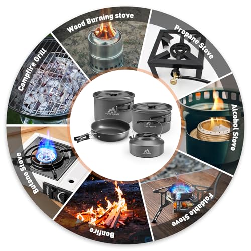 Perfect for 2-4 Campers: Cook pancakes on the non-stick pan, boil water in the kettle, serve meals on unbreakable plates. Ideal for backpacking, car camping, RV trips, and picnics.