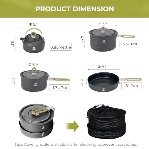Excellent Material: Constructed from durable, food-grade hard-anodized aluminum, this camping cooking set is built to last, accompanying you on countless outdoor adventures.