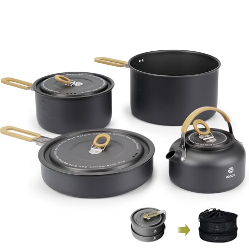 Alocs Camping Cookware, Portable Non-Stick Camping Pan Set with Enhanced Handle, Ideal for Outdoor Kitchen, Picnic, Hiking and Fishing