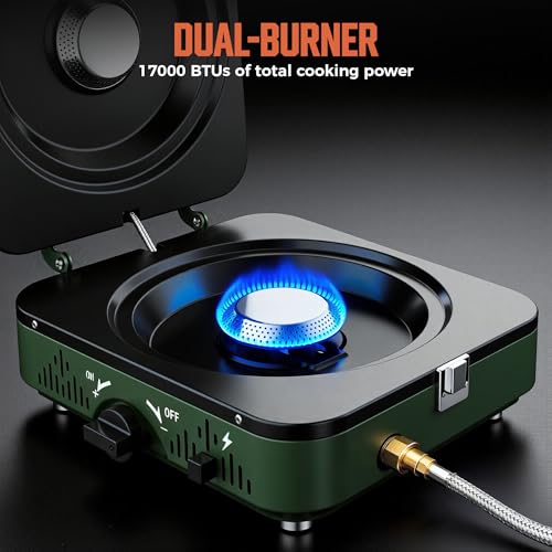 【High Power】With a maximum output of 17,000 BTUs, this propane stove offers quick and efficient cooking, while using 15% less gas than similar models, making it ideal for your outdoor adventures, allowing you to enjoy hot meals in any weather