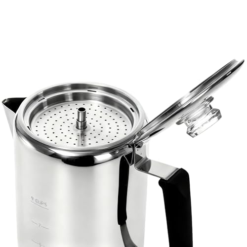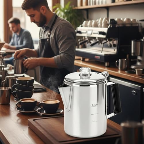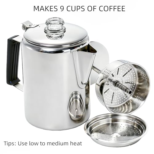 Specification: Camping Coffee Pot Stainless Steel, Coffee Pot Outdoors, Durable Stove Top Brew Coffee Maker on Fire, Ideal for Group Camping, Hiking, Backpacking, RV and Travel, 9 Cups