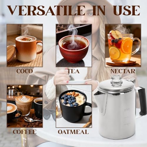 Easy to Use: Just fill the pot with water, fill the filter with coffee grounds, and place it on the stove. The delicious food will fill your pot within a few minutes. Perfect for everyday use and for large gatherings at home or around the campfire