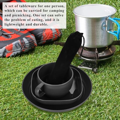 HIGH QUALITY: The plates and cups and bone saucers of this camping set are made of pp material. The stainless steel cutlery is made of high quality stainless steel and is sturdy and durable.