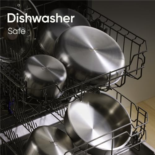 3.Dishwasher Safe & Effortless Cleaning: Mirror polished stainless steel resists stains and is dishwasher friendly. Rivet-free interior prevents food trapping for hassle-free maintenance.