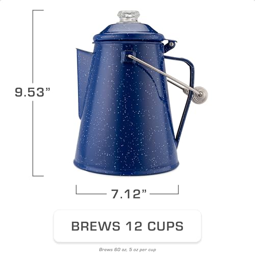 Specification: COLETTI Classic Percolator Coffee Pot — The Most Nostalgic Camping Coffee Pot, Now Modernized [Blue Enamel, 12 Cup]