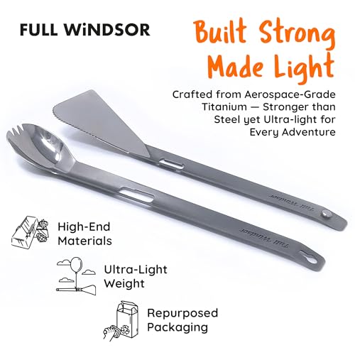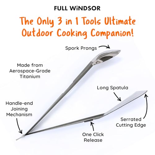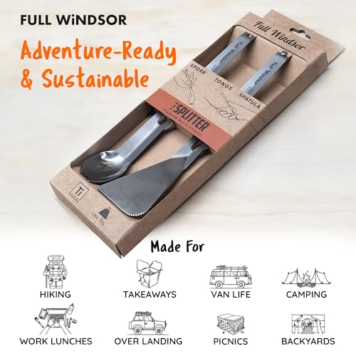Specification: FULL WINDSOR – The Splitter Titanium Multi-Utensil Set – Compact, Lightweight Silver Spork, Tongs, Spatula & Ladle – Durable Cooking Kit for Camping, BBQ, Backpacking, Travel & Outdoor Adventures