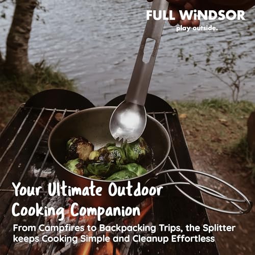 FULL WINDSOR – The Splitter Titanium Multi-Utensil Set – Compact, Lightweight Silver Spork, Tongs, Spatula & Ladle – Durable Cooking Kit for Camping, BBQ, Backpacking, Travel & Outdoor Adventures