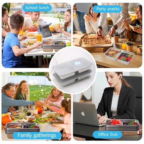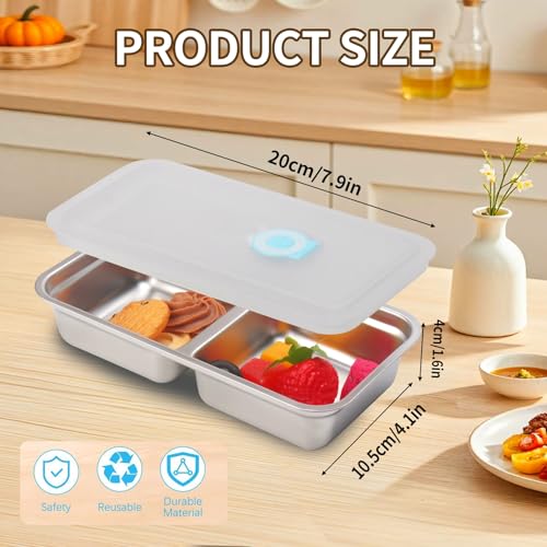 【 Double-compartment Snack Box Design 】 Our stainless steel snack boxes feature a double-compartment design, allowing you to easily store and carry various snacks. Seal, keep fresh, and aliquot to prevent flavors from mixing