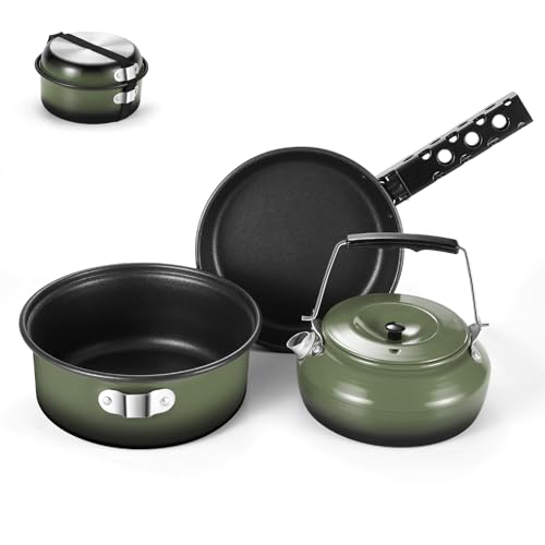 【Exceptional Value】Designed with green color for easy identification, this 5pcs camping cookware is crafted to withstand rugged outdoor conditions while remaining lightweight and functional.