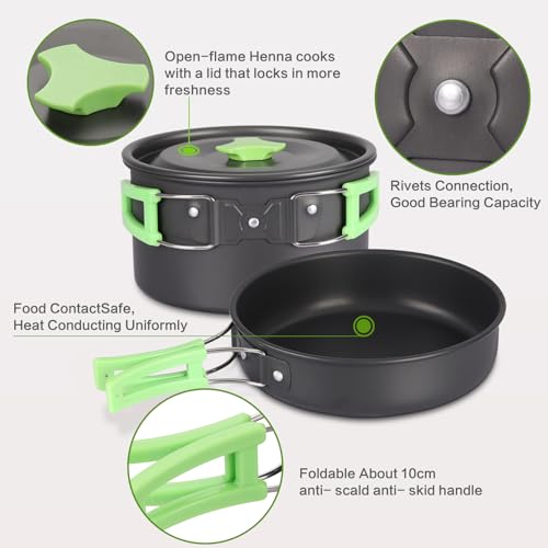 PELLOR Camping Cookware Set, 17pcs Portable Camping Mess Kit with Non-Stick Aluminum Pots, Pans Set and Folding Fork, Lightweight Backpacking Camping Gear for Outdoor/Camping/Picnic/Hiking