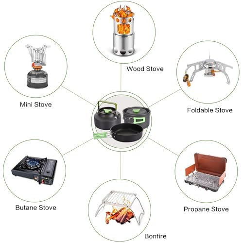 Specification: PELLOR Camping Cookware Set, 17pcs Portable Camping Mess Kit with Non-Stick Aluminum Pots, Pans Set and Folding Fork, Lightweight Backpacking Camping Gear for Outdoor/Camping/Picnic/Hiking