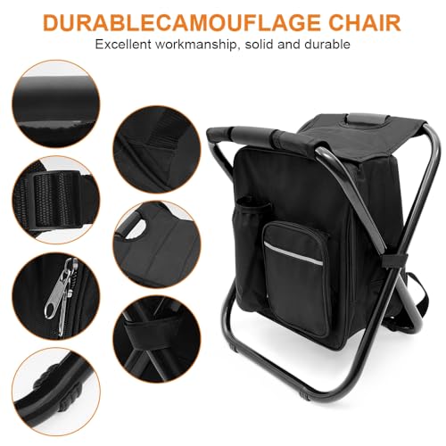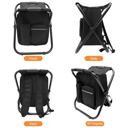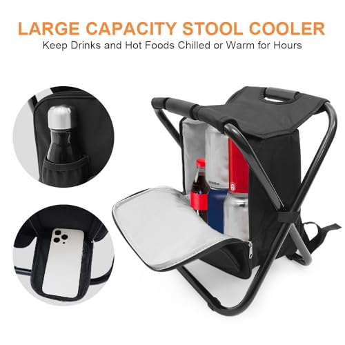 Portable Folding Camping Stool, Backpack with Cooler Bag, Hiking Seat, Outdoor Fishing Hunting Gifts, Black