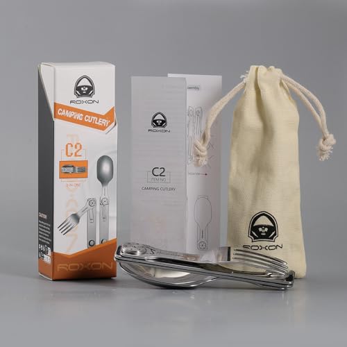 Roxon C2 Camping Utensil 2 in 1 Detachable Folding Cutlery with Fork & Spoon for Outdoor, Camping, Hiking, Easy to Carry Highly Practical Tableware