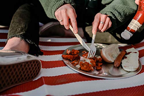 The best seasoning for a meal is fresh air! With our 16-piece cutlery set, you’ll be able to enjoy a great picnic or campfire meal with 4 friends. Our cutlery is crafted from polypropylene, so it’s much stronger than ordinary plastic utensils. Our utensils are fully reusable, and dishwasher-friendly. We include 4 forks, 4 tablespoons, 4 knives and 4 teaspoons.