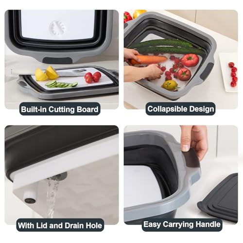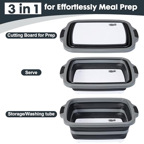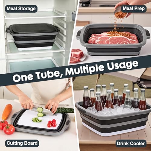 Specification: TANOSHII 3-Piece Collapsible BBQ Prep Tubs with Lids and Built-in Cutting Board – For Meal Prep Marinating Food Storage&Washing – Picnic Camping – Set of 3 – (1) Medium + (1) L + (1) XL – Black