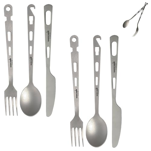 Specification: Titanium Fork Spoon Knife Set – Camping Tongs | Ultralight Backpacking Utensils, Travel Cutlery Set, Heat-Resistant & Rustproof, Hiking Survival Gear ((Knife+ Fork+ Spoon)* 2)
