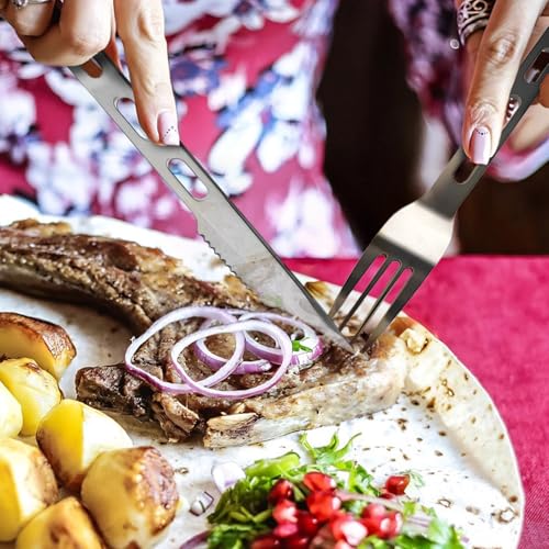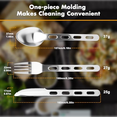 Food – Grade Durable Set:Camping cutlery with 2cr14 knife, 430 fork & spoon. Thick – built, food – safe materials, including strong aluminum fastener, perfect for US outdoor dining.