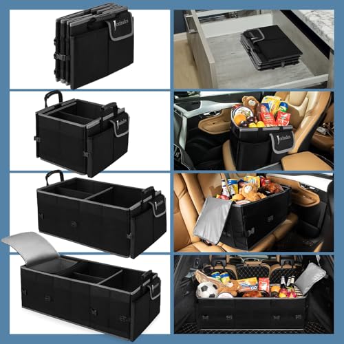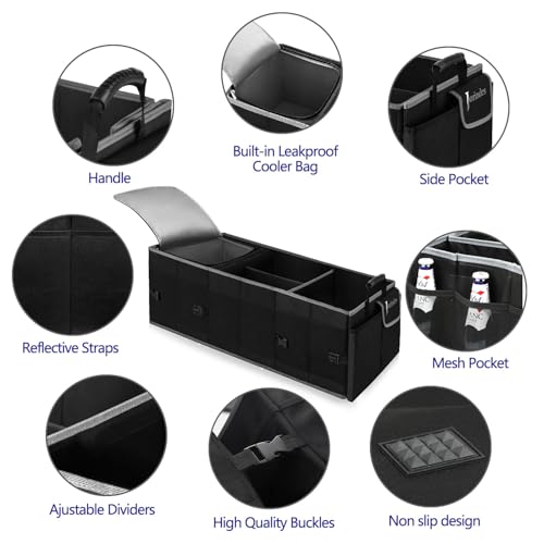 【Built-in & Leak-proof Cooler Bag 】 Our food trunk organizer for cars comes with a built-in and leak-proof cooler bag perfect for family activities.The thermal insulation keeps your food warm and your drinks cold, making it ideal for picnics, camping and fishing trips.